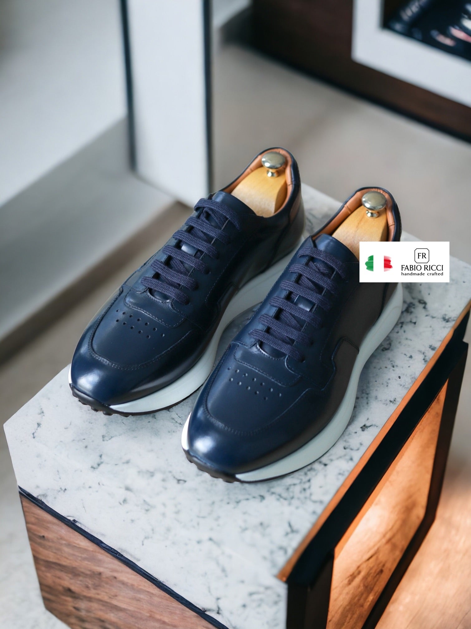 Niebieskie skórzane trampki