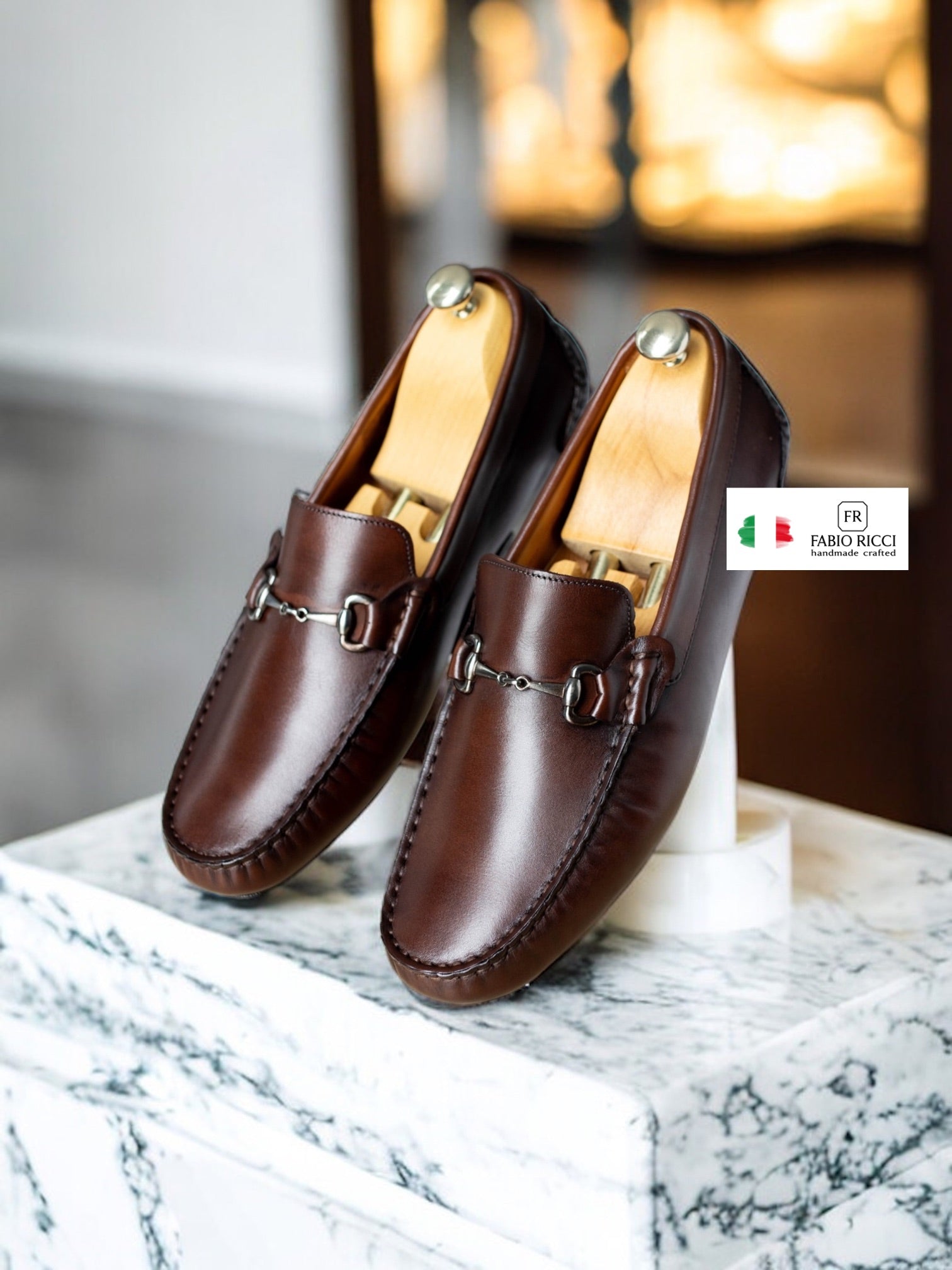 Brązowe skórzane buty do jazdy samochodem